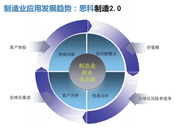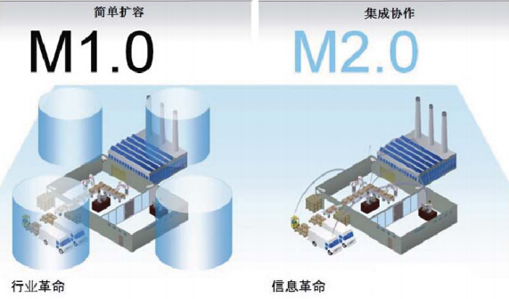 思科基于自己服务于全球500强企业所得到的经验和看法:目前全球制造业已经从简单扩容的行业革命,转向为集成协作的信息革命,从思科角度而言,也就是说从所谓的制造业1.0转向制造业2.0。