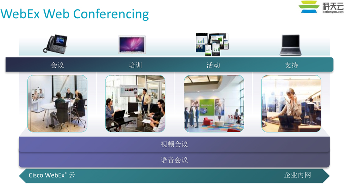 任何时间、任何地点与任何可接入互联网的对象进行实时沟通是各个企业的希望,需求。尤其是在远程会议、视频沟通、网络培训课程、远程技术支持、辅助销售等领域。 为了满足各个企业的这种需求,我们公司推出了WEBEX这样的解决方案。在兼容性方面,WebEx软件有着非常好的表现,可以很好的运行在不同平台的系统,甚至是移动设备上,例如苹果系统、安卓系统、黑莓等智能操作系统,通过下载移动客户端,只要有网络支持,即可随时随地享受移动办公的乐趣。同时WebEx Recorder可以录制全屏或指定窗口,可以设定是否包含声音,生成的文件体积极小且极清晰,录制过程占用资源很少。
